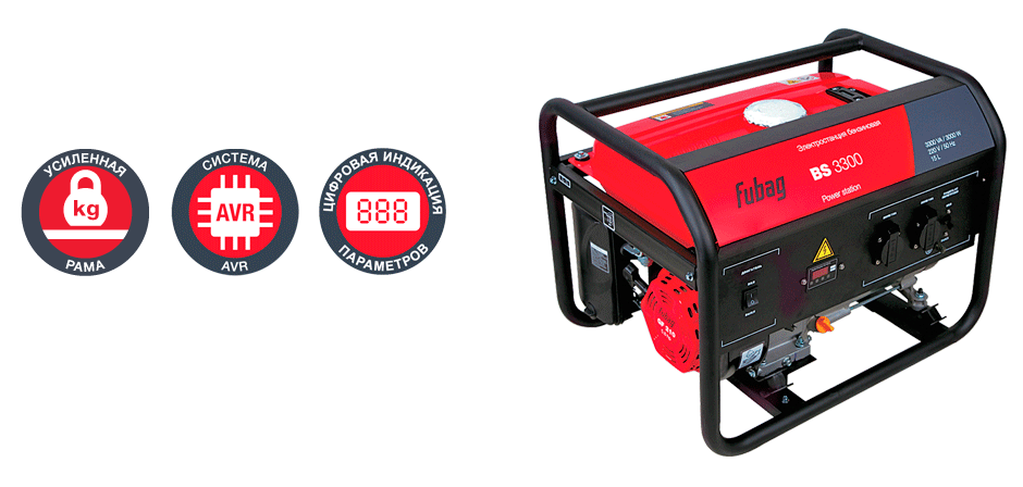Электростанция FubagBS 3300 обеспечивает высокую мощность при небольших габаритах, весе и расходе топлива.