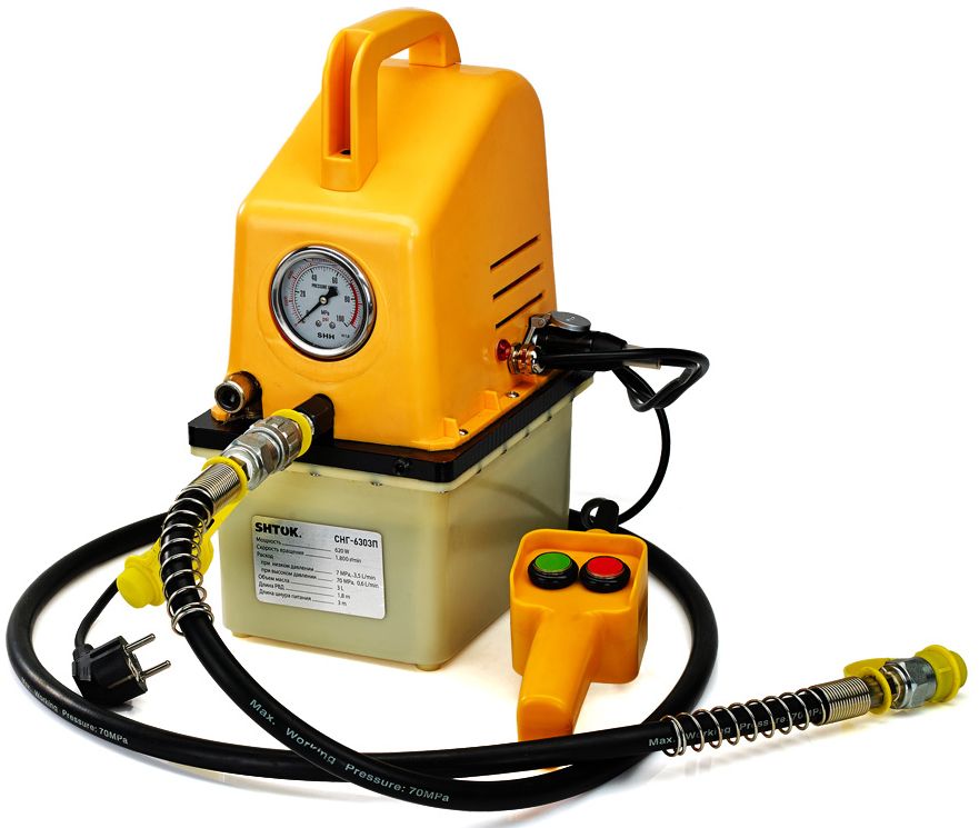 - Станция насосная гидравлическая переносная СНГ-6303П с рукавом высокого давления 1,8 м;