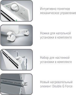 Мощность: 2000 / 1000 Вт. Площадь обогрева: 1 - 22 кв.м. Установка: напольная. Механический термостат. Комбинированный конвективно-инфракрасный обогрев.