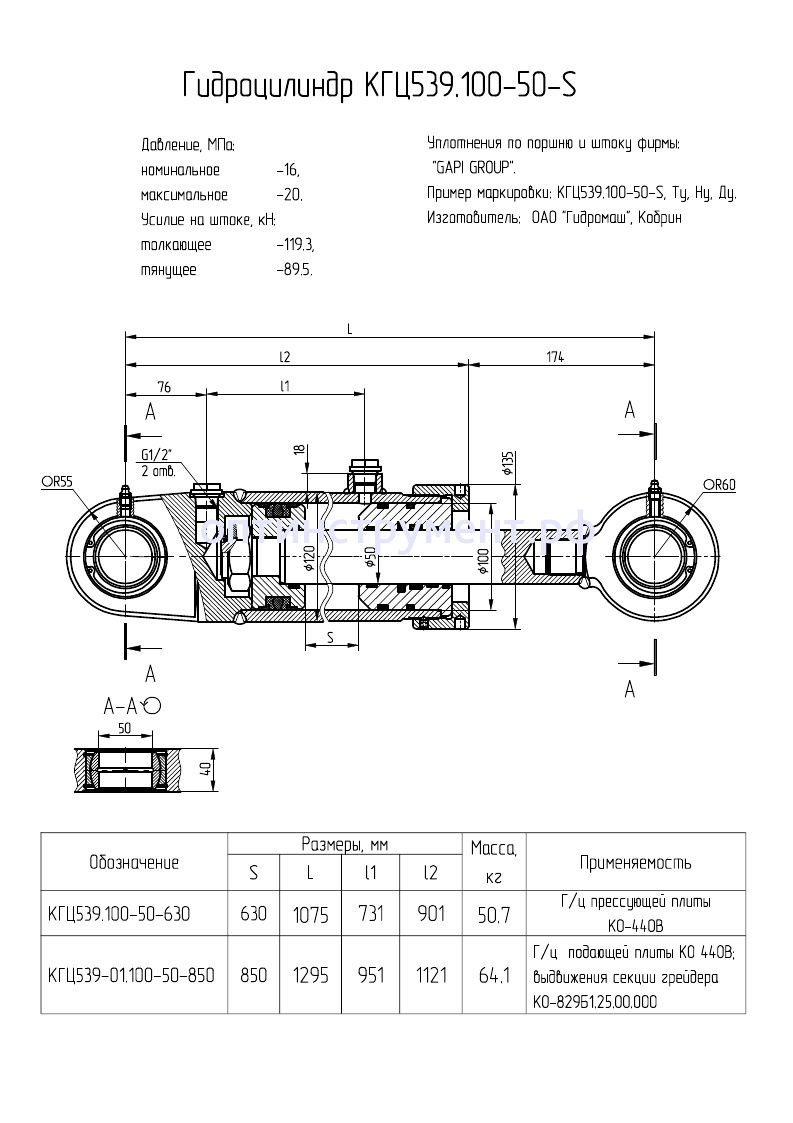 Гидроцилиндр КГЦ 539.100-50-630 в продаже по цене 22 425 руб. в Интернет-магазине Проф-инструмент с доставкой в Кирове и Кировской области. Звоните по телефону +8 (800) 302-10-51.
