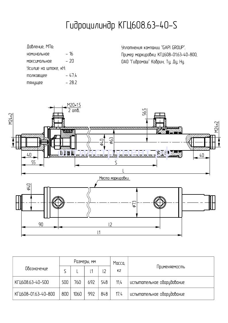 Гидроцилиндр испытательного оборудования КГЦ 608-01.63-40-800 в продаже по цене 11 250 руб. в Интернет-магазине Проф-инструмент с доставкой в Кирове и Кировской области. Звоните по телефону +8 (800) 302-10-51.