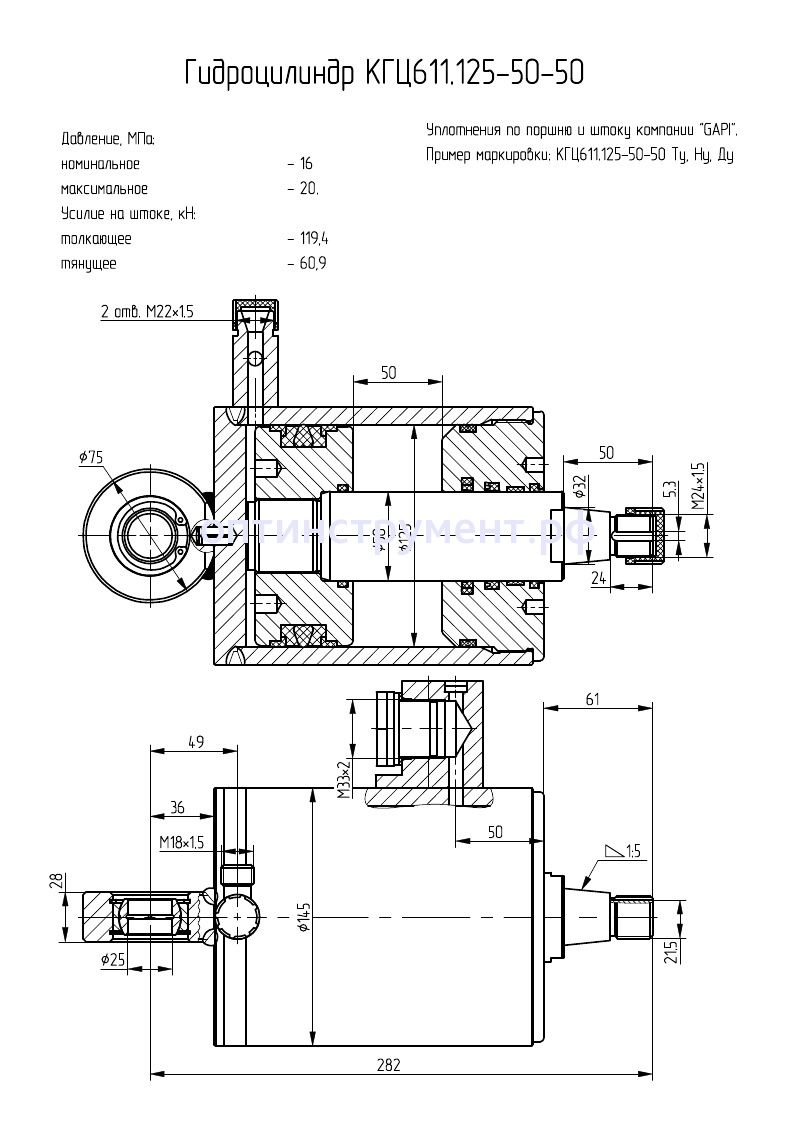 Гидроцилиндр КГЦ 611.125-50-50 в продаже по цене 11 490 руб. в Интернет-магазине Проф-инструмент с доставкой в Кирове и Кировской области. Звоните по телефону +8 (800) 302-10-51.