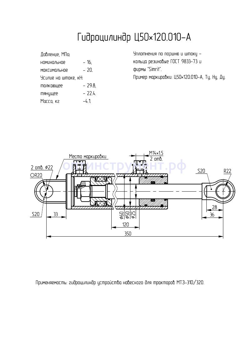 Гидроцилиндр подъема навесного устройства тракторов "МТЗ-310/320" Ц50х120.010-А в продаже по цене 0 руб. в Интернет-магазине Проф-инструмент с доставкой в Кирове и Кировской области. Звоните по телефону +8 (800) 302-10-51.