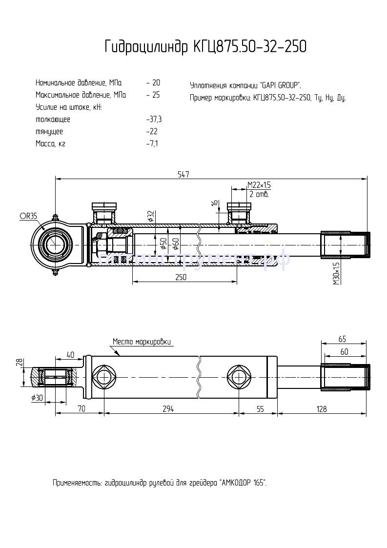 Гидроцилиндр рулевой для грейдера "Амкодор 165" КГЦ 875.50-32-250 в продаже по цене 10 125 руб. в Интернет-магазине Проф-инструмент с доставкой в Кирове и Кировской области. Звоните по телефону +8 (800) 302-10-51.