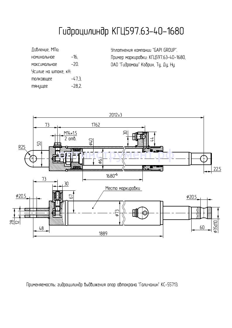 Гидроцилиндр выдвижения опор автокрана "Галичанин КС-55713" КГЦ 597.63-40-1680 в продаже по цене 18 810 руб. в Интернет-магазине Проф-инструмент с доставкой в Кирове и Кировской области. Звоните по телефону +8 (800) 302-10-51.