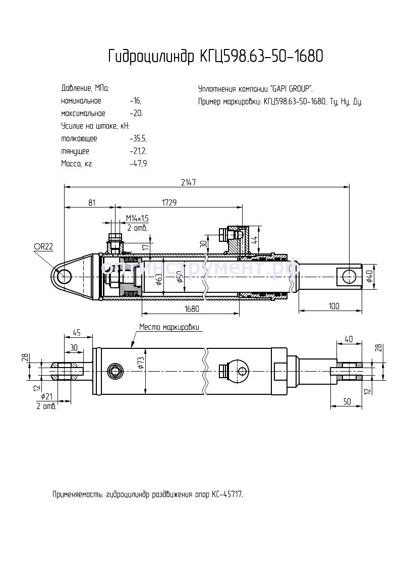 Гидроцилиндр раздвижения опор (Автокран КС-45717 Ивановец) КГЦ 598.63-50-1680 в продаже по цене 24 420 руб. в Интернет-магазине Проф-инструмент с доставкой в Кирове и Кировской области. Звоните по телефону +8 (800) 302-10-51.