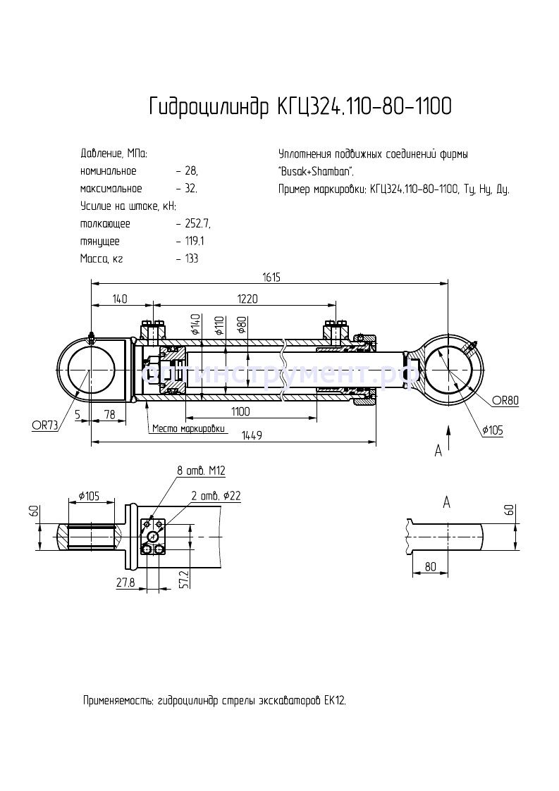 Гидроцилиндр стрелы экскаваторов "ЕК12"КГЦ 324.110-80-1100 в продаже по цене 43 095 руб. в Интернет-магазине Проф-инструмент с доставкой в Кирове и Кировской области. Звоните по телефону +8 (800) 302-10-51.