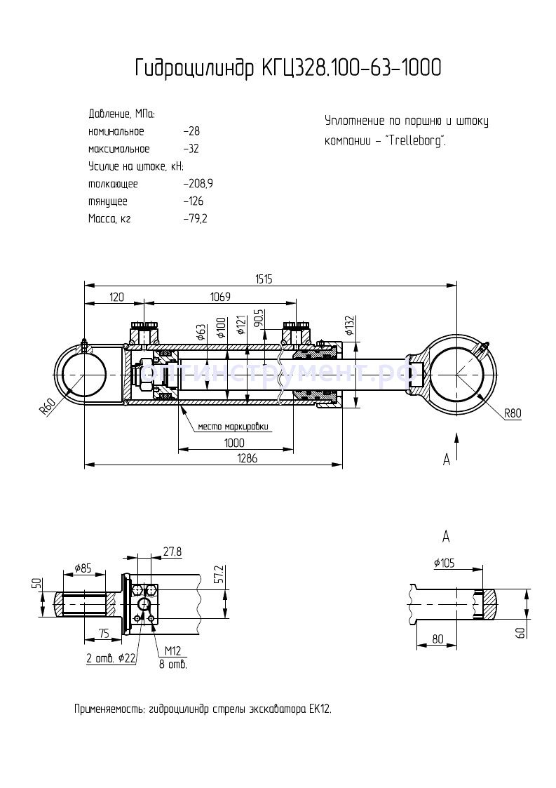 Гидроцилиндр стрелы экскаватора "ЕК12" КГЦ 328.100-63-1000 в продаже по цене 34 800 руб. в Интернет-магазине Проф-инструмент с доставкой в Кирове и Кировской области. Звоните по телефону +8 (800) 302-10-51.