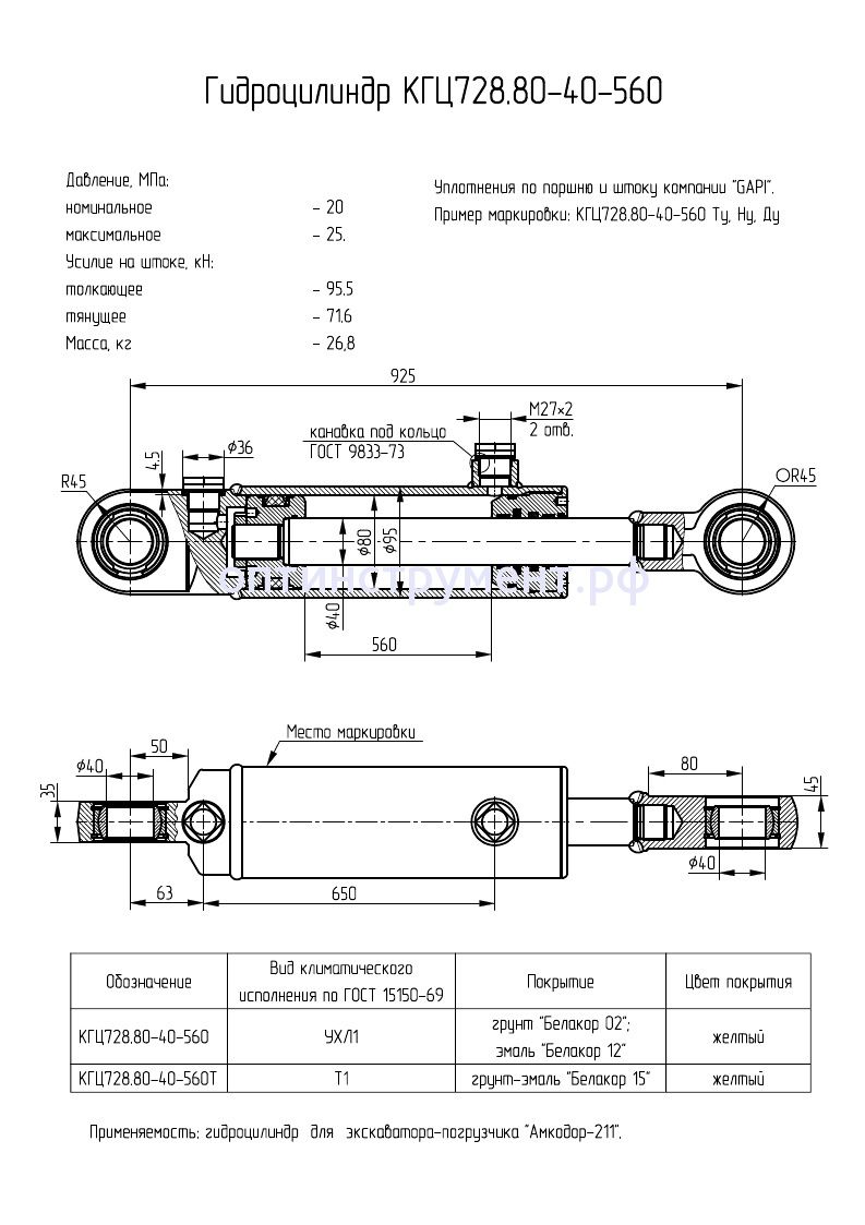 Гидроцилиндр для экскаватора-погрузчика "Амкодор-211" КГЦ 728.80-40-560 в продаже по цене 14 850 руб. в Интернет-магазине Проф-инструмент с доставкой в Кирове и Кировской области. Звоните по телефону +8 (800) 302-10-51.