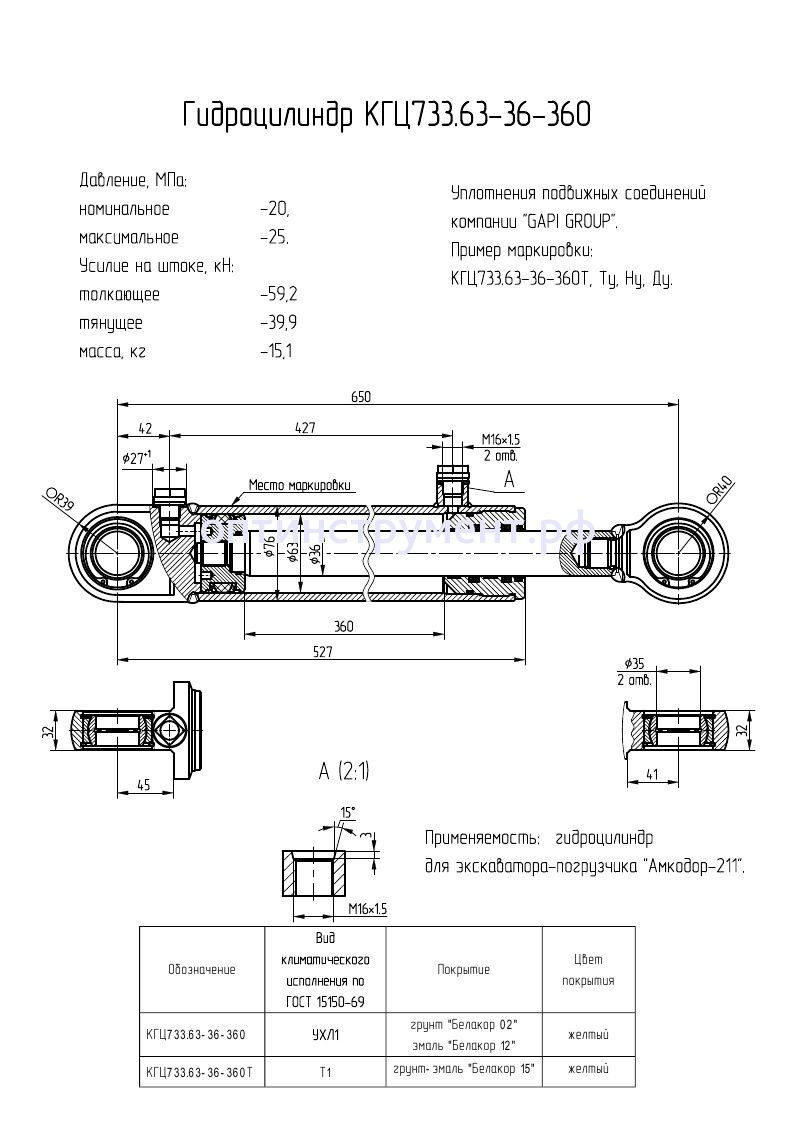 Гидроцилиндр для экскаватора-погрузчика "Амкодор-211" КГЦ 733.63-36-360 в продаже по цене 10 830 руб. в Интернет-магазине Проф-инструмент с доставкой в Кирове и Кировской области. Звоните по телефону +8 (800) 302-10-51.