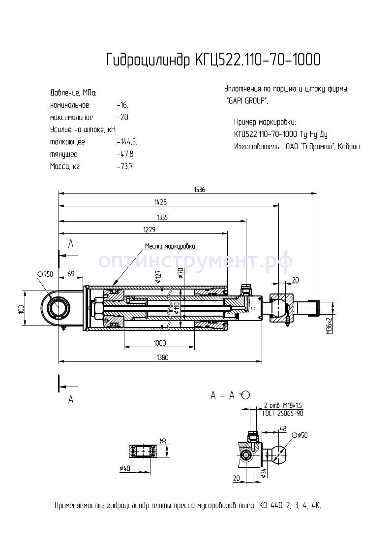 Гидроцилиндр плиты пресса мусоровозов КГЦ 522.110-70-1000 в продаже по цене 33 090 руб. в Интернет-магазине Проф-инструмент с доставкой в Кирове и Кировской области. Звоните по телефону +8 (800) 302-10-51.