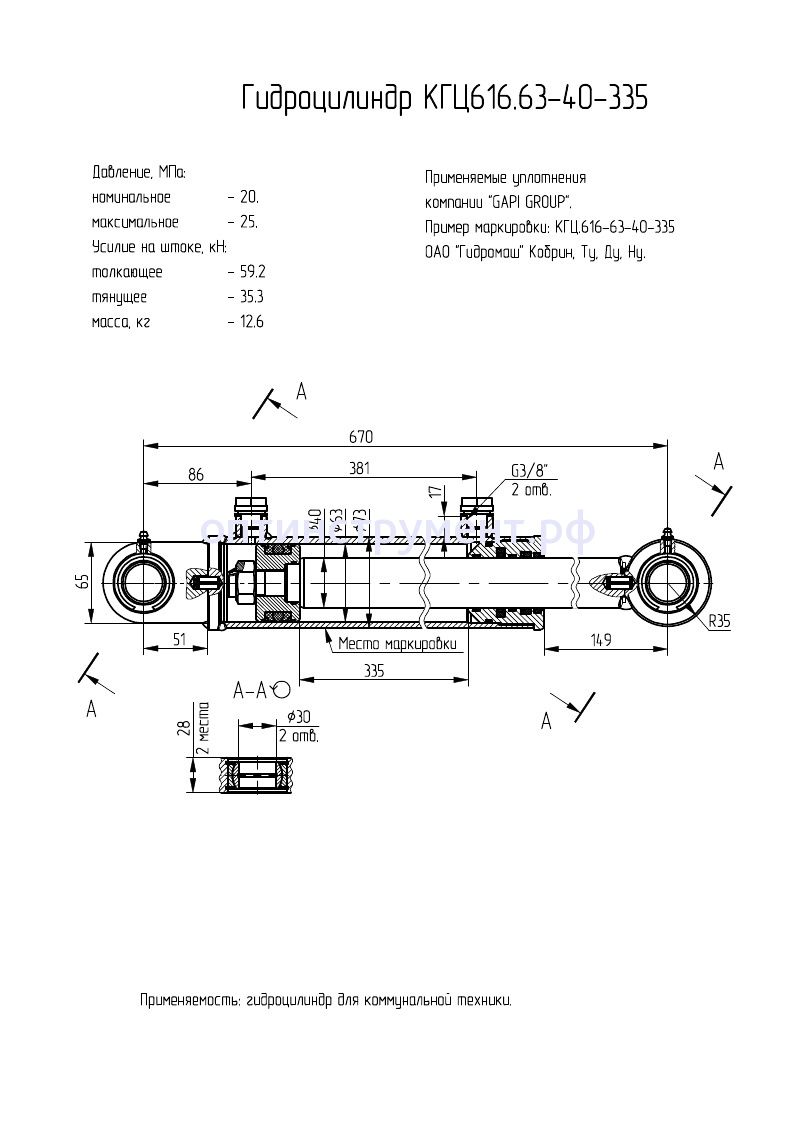 Гидроцилиндр для коммунальной техники КГЦ 616.63-40-335 в продаже по цене 10 050 руб. в Интернет-магазине Проф-инструмент с доставкой в Кирове и Кировской области. Звоните по телефону +8 (800) 302-10-51.
