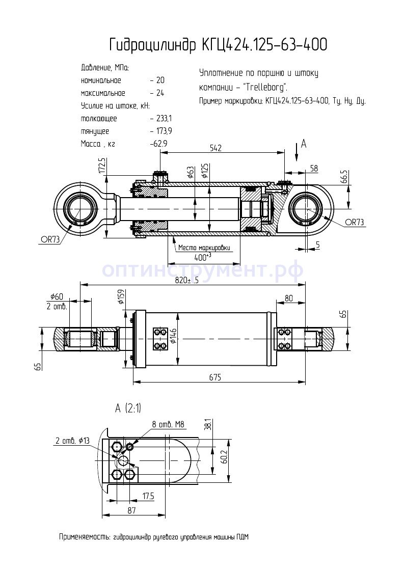 Гидроцилиндр рулевого управления машин "ПДМ" КГЦ 424.125-63-400 в продаже по цене 28 920 руб. в Интернет-магазине Проф-инструмент с доставкой в Кирове и Кировской области. Звоните по телефону +8 (800) 302-10-51.