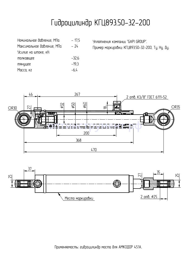 Гидроцилиндр моста для вилочного погрузчика "Амкодор 451А" КГЦ 893.50-32-200 в продаже по цене 8 715 руб. в Интернет-магазине Проф-инструмент с доставкой в Кирове и Кировской области. Звоните по телефону +8 (800) 302-10-51.