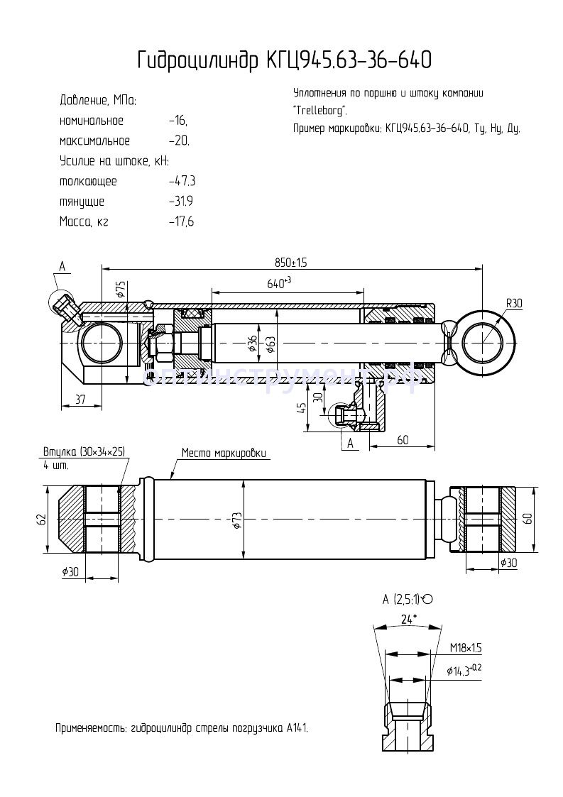 Гидроцилиндр стрелы погрузчика "А141" КГЦ 945.63-36-640 в продаже по цене 25 500 руб. в Интернет-магазине Проф-инструмент с доставкой в Кирове и Кировской области. Звоните по телефону +8 (800) 302-10-51.