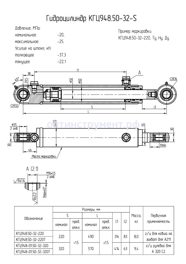 Гидроцилиндр погрузчика "Амкодор 320С2" КГЦ 948-01.50-32-320 в продаже по цене 8 388 руб. в Интернет-магазине Проф-инструмент с доставкой в Кирове и Кировской области. Звоните по телефону +8 (800) 302-10-51.