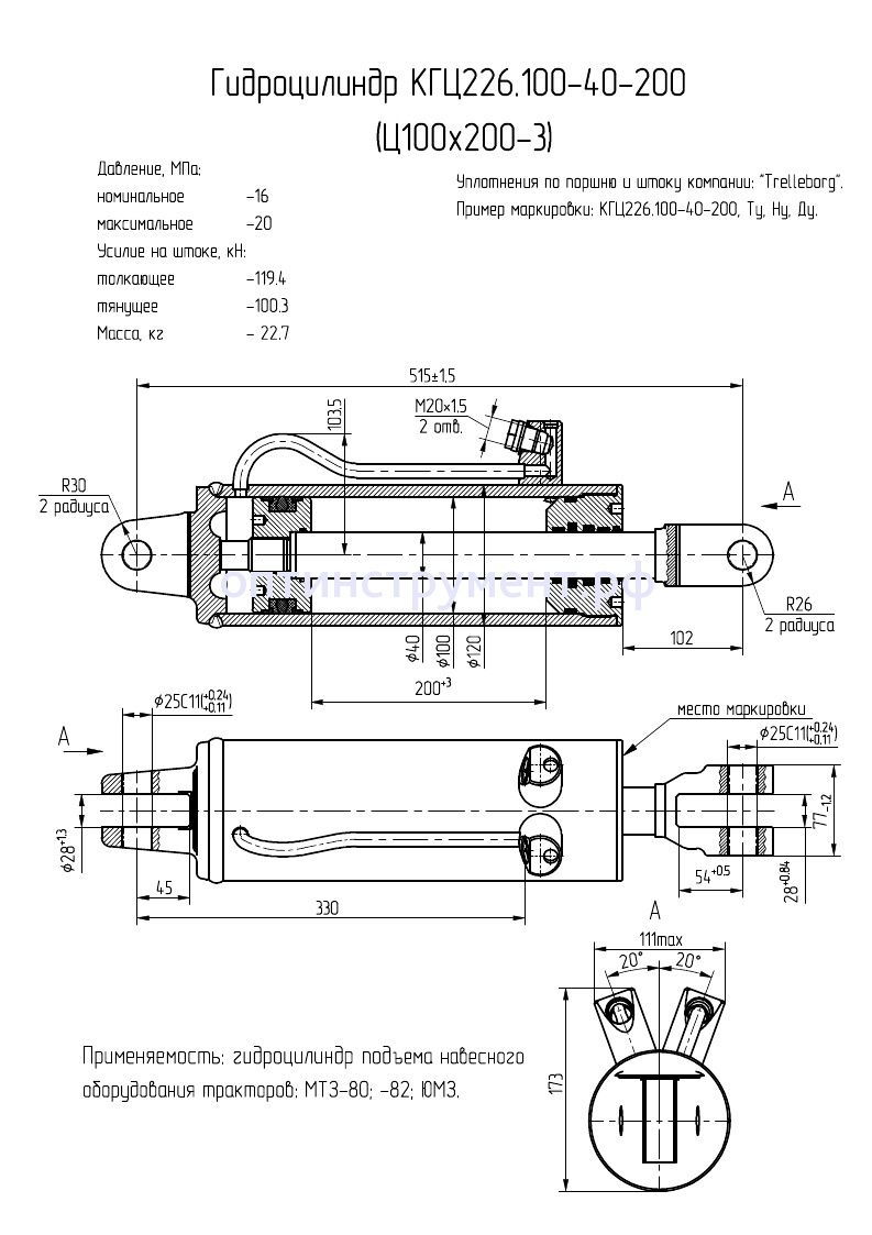 Гидроцилиндр задней навески тракторов "МТЗ" КГЦ 226.100-40-200 в продаже по цене 0 руб. в Интернет-магазине Проф-инструмент с доставкой в Кирове и Кировской области. Звоните по телефону +8 (800) 302-10-51.