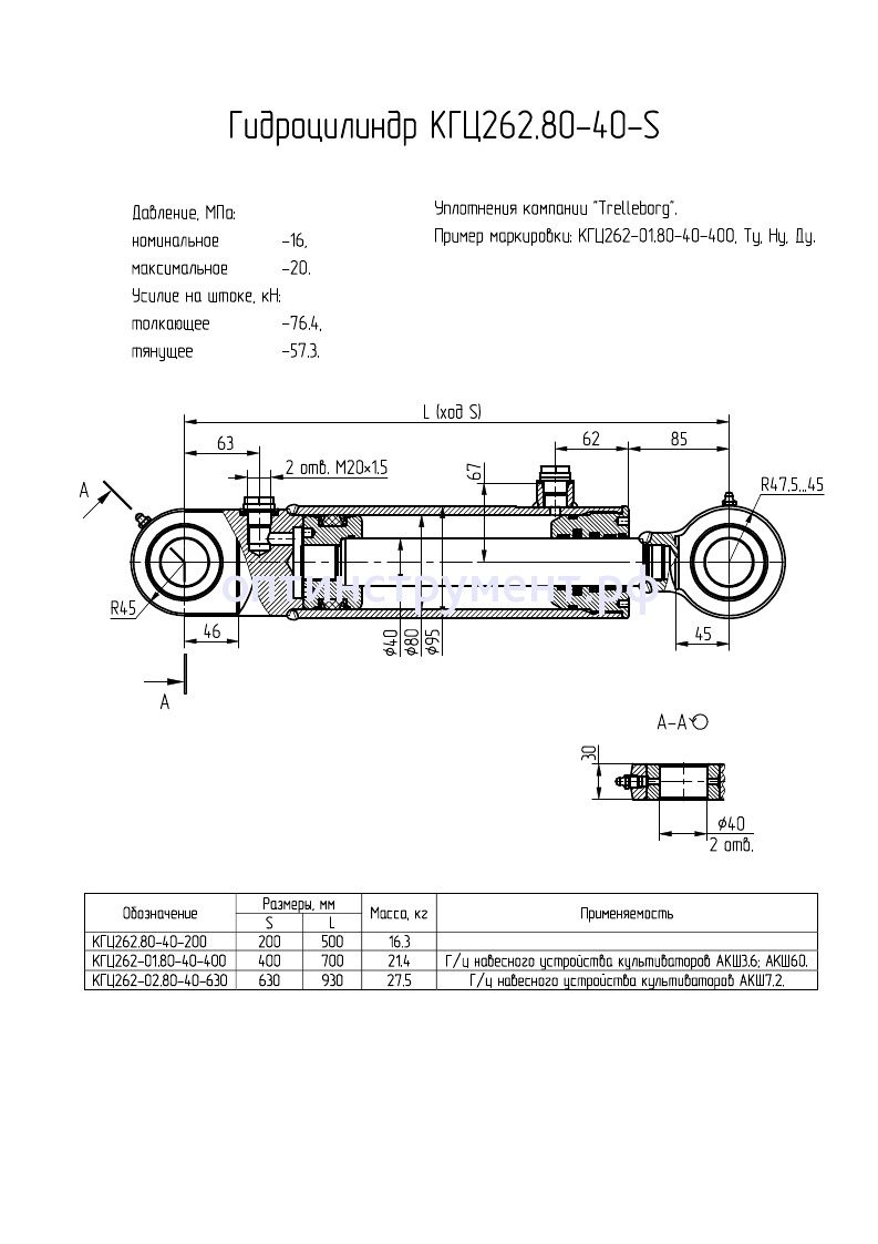 Гидроцилиндр навески культиватора АКШ КГЦ 262.80-40-200 в продаже по цене 9 990 руб. в Интернет-магазине Проф-инструмент с доставкой в Кирове и Кировской области. Звоните по телефону +8 (800) 302-10-51.