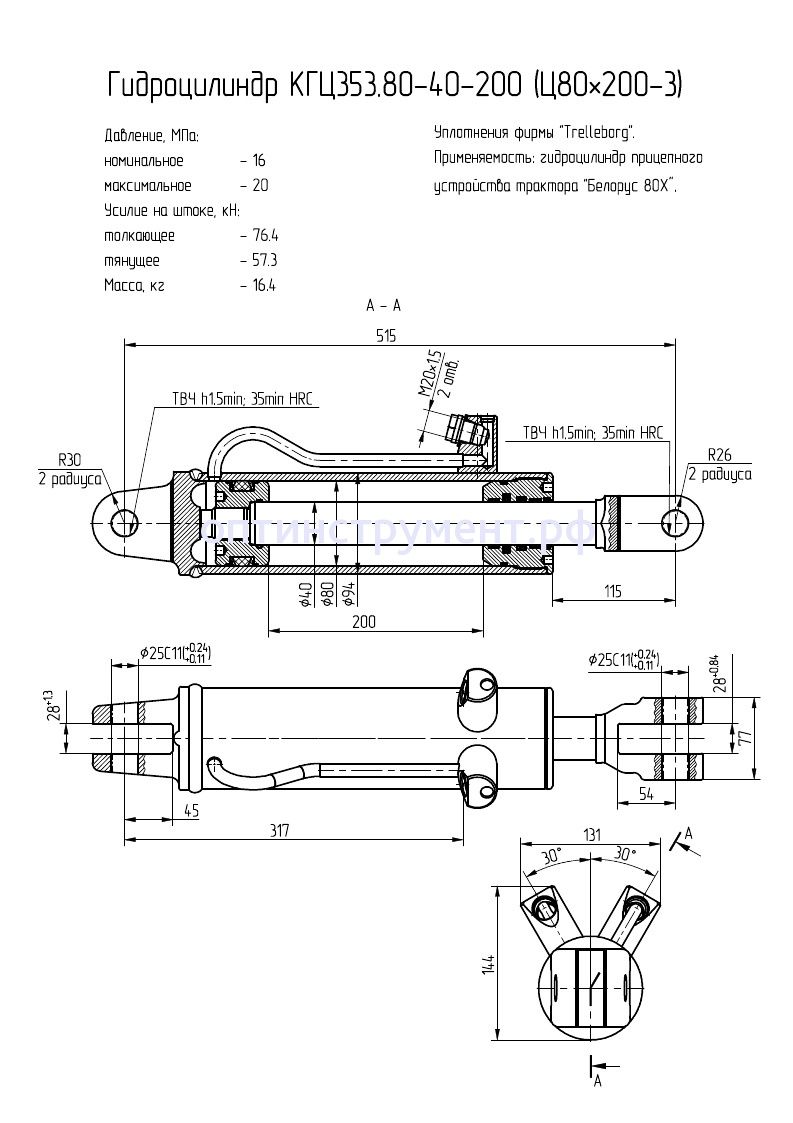 Гидроцилиндр прицепного устройства трактора "Белорус 80Х" КГЦ 353.80-40-200 в продаже по цене 11 235 руб. в Интернет-магазине Проф-инструмент с доставкой в Кирове и Кировской области. Звоните по телефону +8 (800) 302-10-51.