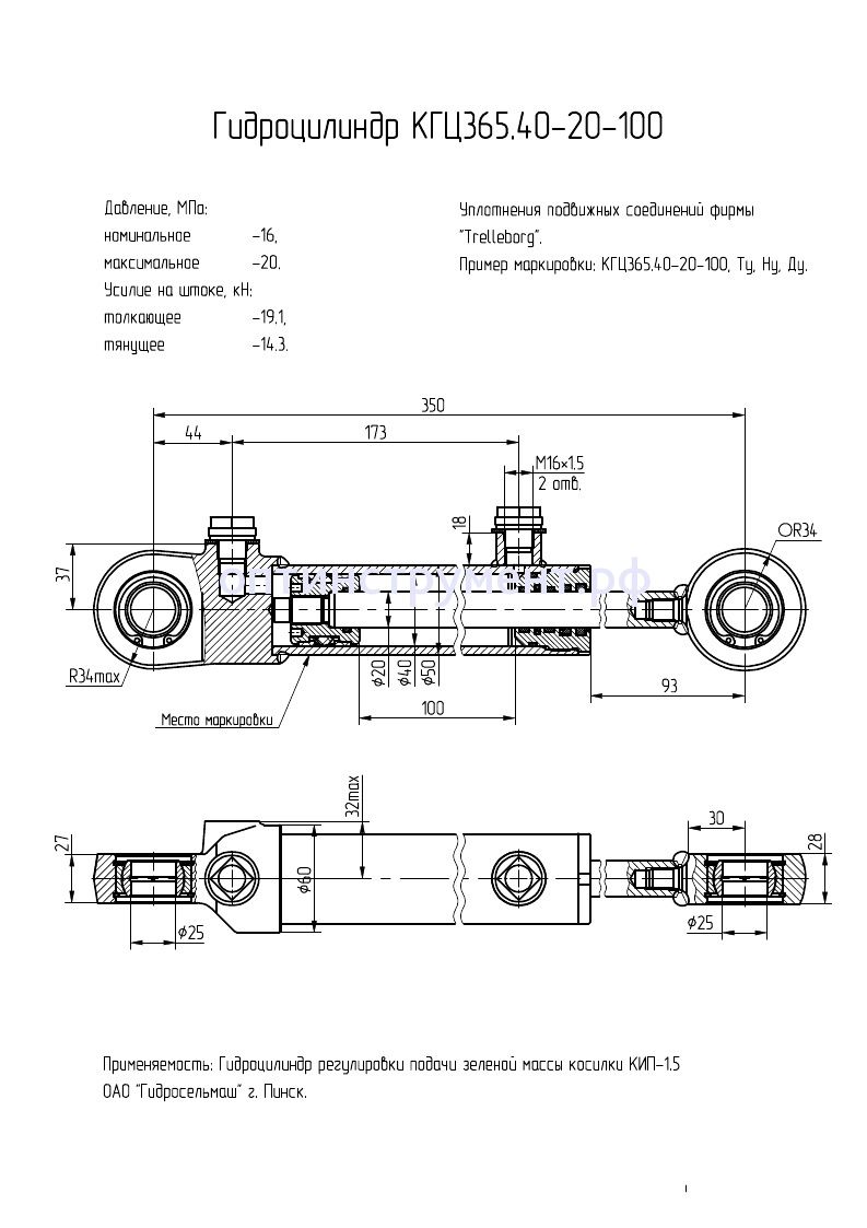 Гидроцилиндр регулировка подачи зеленой массы косилки "КИП-1.5" КГЦ 365.40-20-100 в продаже по цене 0 руб. в Интернет-магазине Проф-инструмент с доставкой в Кирове и Кировской области. Звоните по телефону +8 (800) 302-10-51.