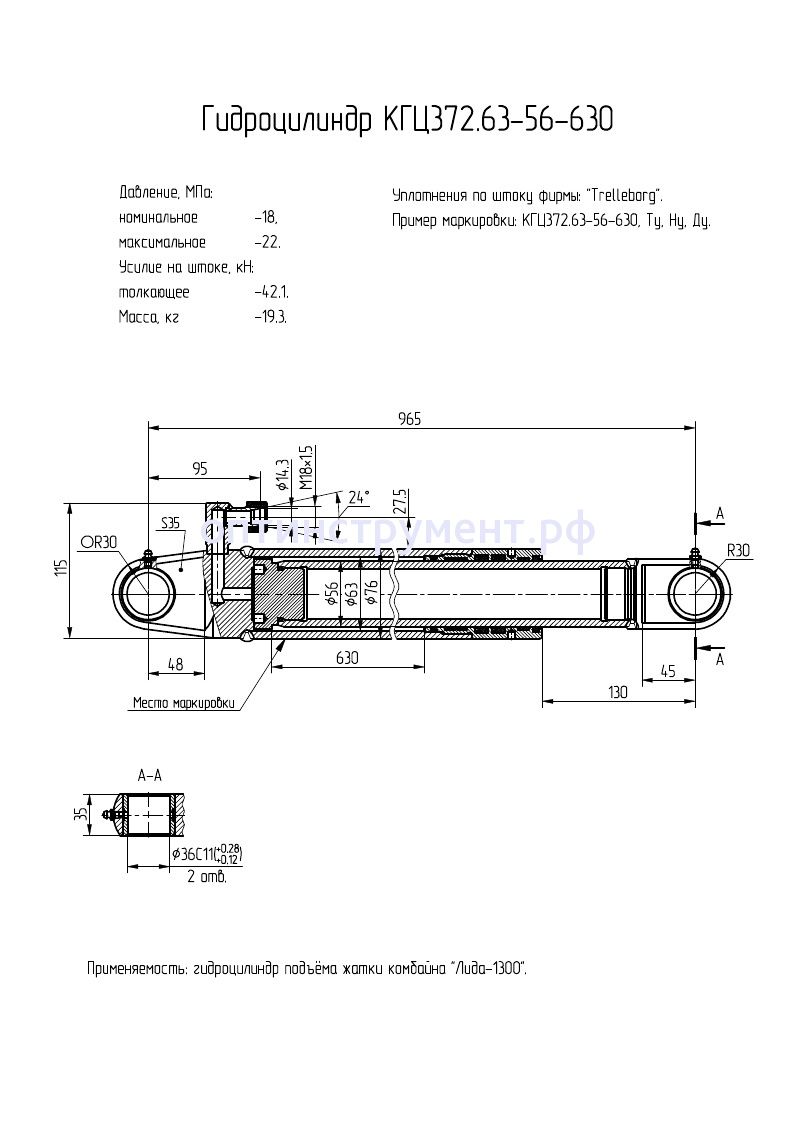 Гидроцилиндр подъёма жатки зерноуборочного комбайна КГЦ 372.63-56-630 в продаже по цене 12 945 руб. в Интернет-магазине Проф-инструмент с доставкой в Кирове и Кировской области. Звоните по телефону +8 (800) 302-10-51.