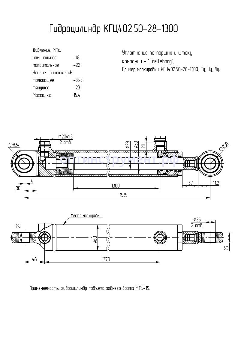 Гидроцилиндр для подъема заднего борта (МТУ-15) КГЦ 402.50-28-1300 в продаже по цене 10 620 руб. в Интернет-магазине Проф-инструмент с доставкой в Кирове и Кировской области. Звоните по телефону +8 (800) 302-10-51.