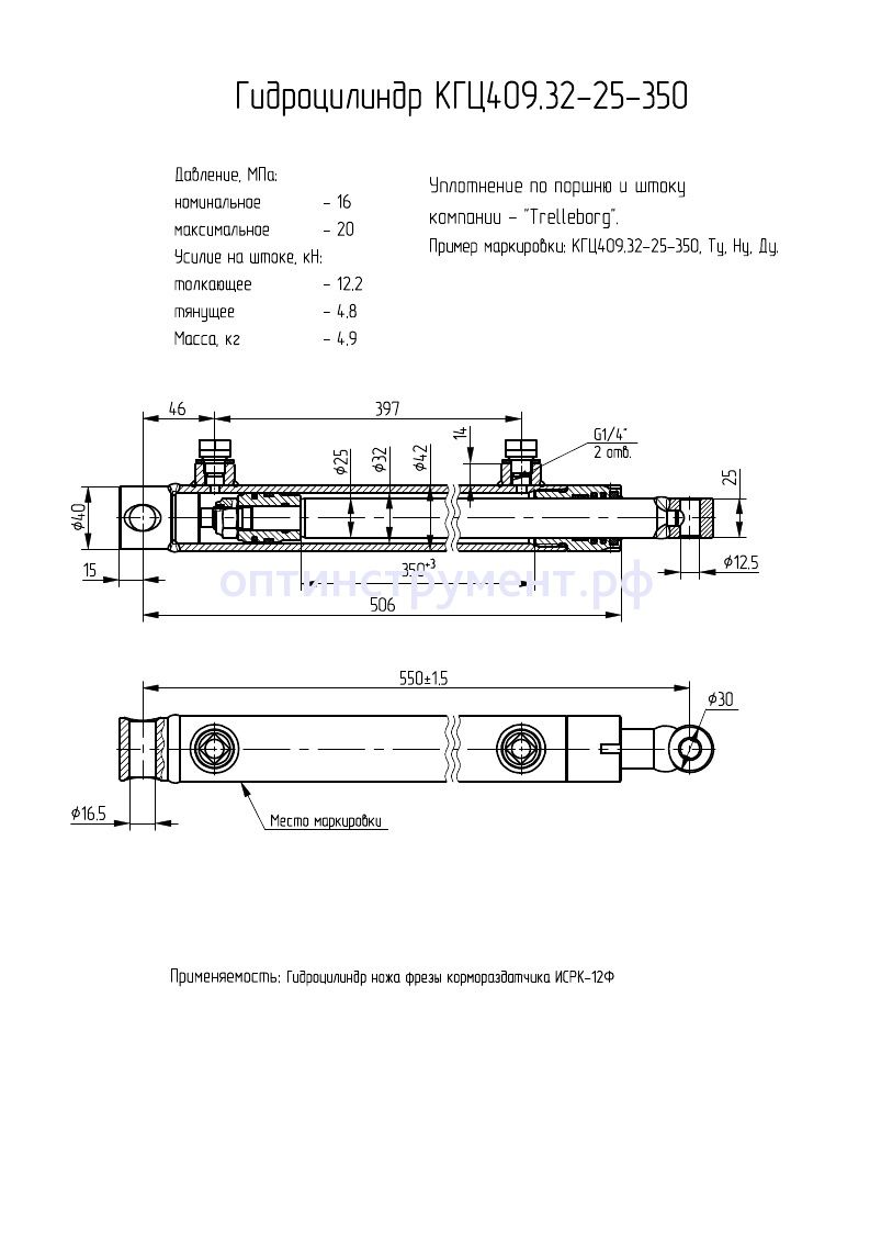 Гидроцилиндр ножа фрезы кормораздатчика "ИСРК-12Ф" КГЦ 409.32-25-350 в продаже по цене 0 руб. в Интернет-магазине Проф-инструмент с доставкой в Кирове и Кировской области. Звоните по телефону +8 (800) 302-10-51.