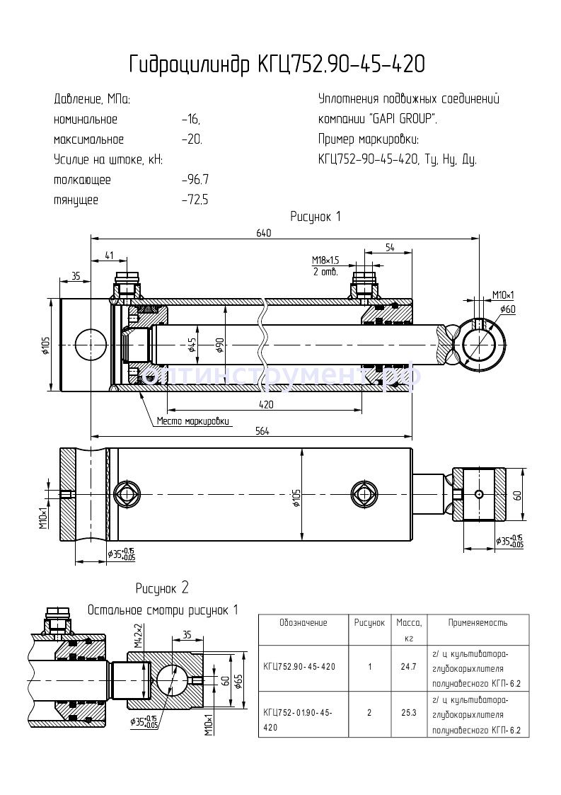 Гидроцилиндр культиватора-глубокорыхлителя полунавесного "КГП-6.2" КГЦ 752.90-45-420 в продаже по цене 0 руб. в Интернет-магазине Проф-инструмент с доставкой в Кирове и Кировской области. Звоните по телефону +8 (800) 302-10-51.