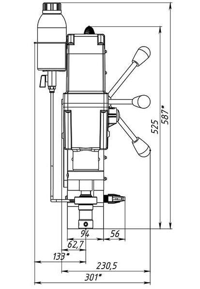 Этот переносной сверлильный станок на магнитном основании предназначен для промышленного использования, сверления большого количества отверстий диаметром до 100 мм, и, также будет надежен при использовании спиральных сверл диаметром до 32 мм. Это станок с подвижным магнитным основанием, то есть при активированном электромагните возможно разъединить жесткую связь станины с магнитом и отрегулировать положение центра сверла, потом снова жестко закрепить станок поворотом рукоятки. Эта функция весьма полезна при сверлении вертикальных поверхностей, потому что трудно с первой попытки попасть довольно тяжелым магнитым станком в центр будущего отверстия. На магнитных станках зарубежных производителей такая функция называется "магнитное основание с юстировкой". В 2014 году наши инженеры усовершенствовали систему подвижного магнитного основания, создав конструкцию, не имеющую аналогов по надежности, износостойкости и удобству. В отличие от иностранных станков, имеющих подобный механизм, наш невозможно "провернуть", а для разобщения магнита и корпуса станка не требуется ключ.