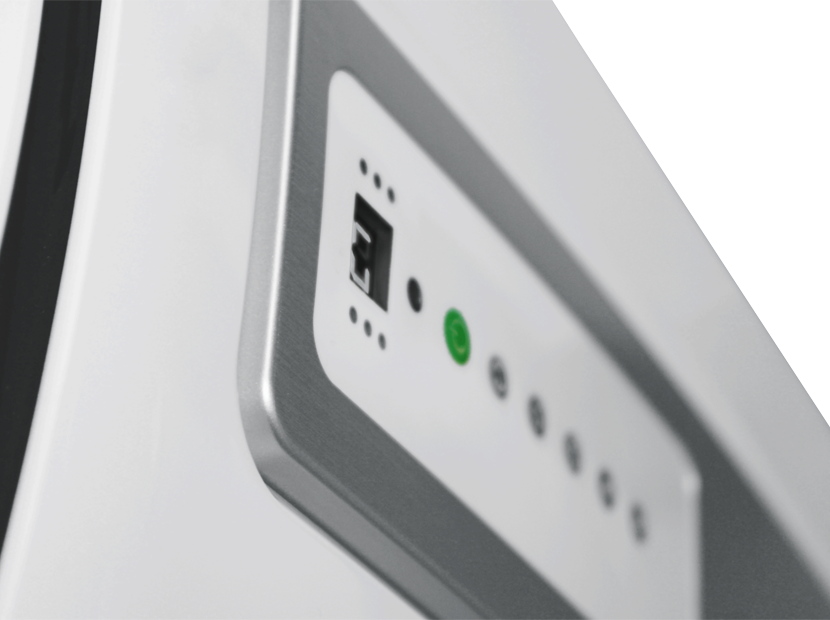 Панель управления мобильного кондиционера содержит функциональные клавиши и соответствующие индикаторы, позволяющие задавать определенные условия эксплуатации и контролировать работу прибора для достижения оптимального комфорта:
