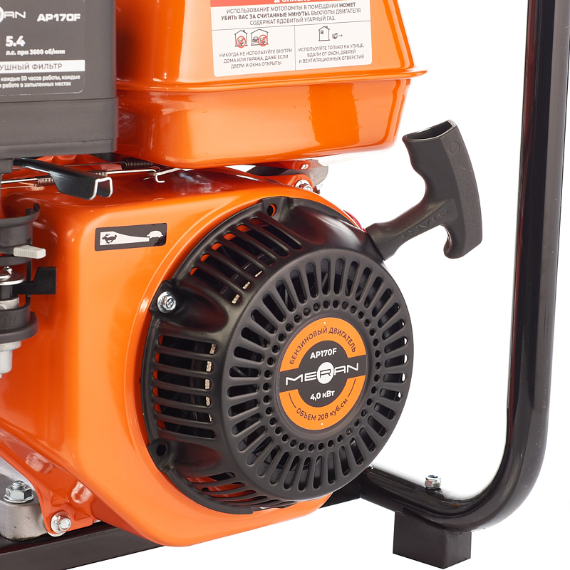 Высоконапорная, пожарная бензиновая мотопомпа. Тушение пожаров, перекачка воды на дальние растояние, полив. Мощность 5.4 лс, Производительность 18 куб м/час, напор 80 м, двигатель AP170F с датчиком масла в картере , D вх/вых 50/50-40-40 мм, размер частиц 1 мм, бак 3.6 л.