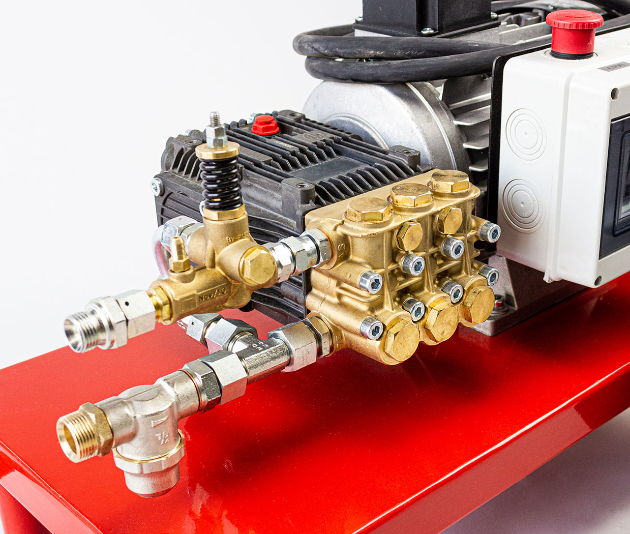 - Трехплунжерный насос высокого давления Annovi Reverberi (Италия). Головка из никелированной латуни с высокой стойкостью к механическим нагрузкам гарантирует длительный срок эксплуатации. Термоклапан для защиты от перегрева;