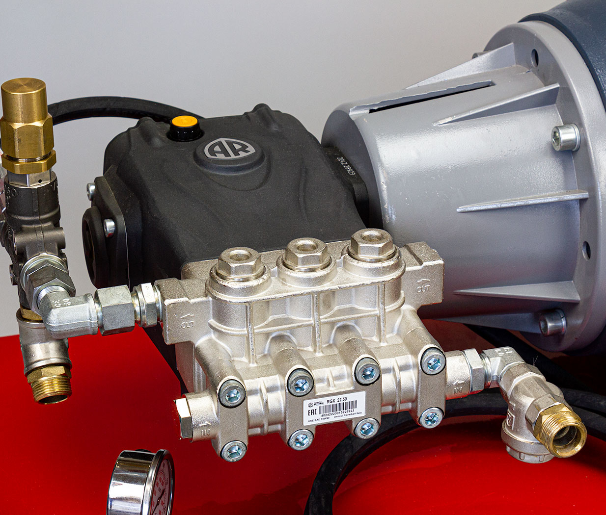 Его конструкция обеспечивает надежную работу в течение продолжительного времени, т.к. все детали его гидравлической системы изготовлены из нержавеющих материалов, а клапаны всасывания и нагнетания защищены от попадания грязи при всасывании и сливе рабочей жидкости. Постоянство давления в испытываемой системе обеспечивается двумя клапанами и вентилем с шаровыми запорами.