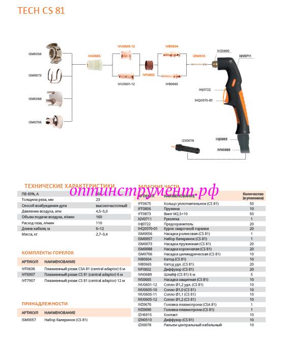 Плазмотрон Сварог TECH CS 81, 6 м, IVT6907 в продаже по цене 13 057 руб. в Интернет-магазине Проф-инструмент с доставкой в Кирове и Кировской области. Звоните по телефону +8 (800) 302-10-51.