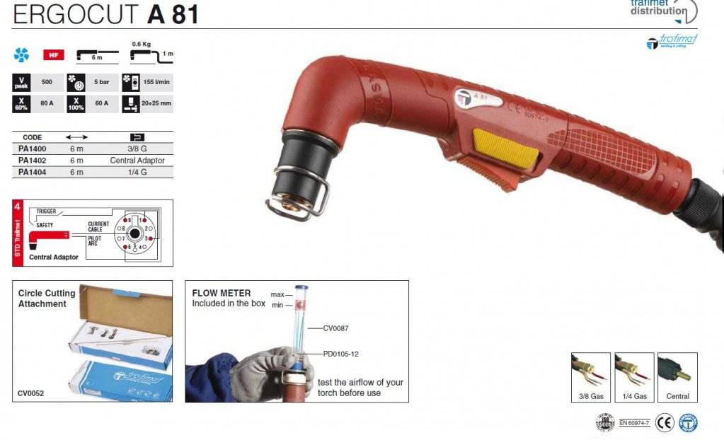 Плазмотрон Trafimet Ergocut A81 (6м) в продаже по цене 0 руб. в Интернет-магазине Проф-инструмент с доставкой в Кирове и Кировской области. Звоните по телефону +8 (800) 302-10-51.
