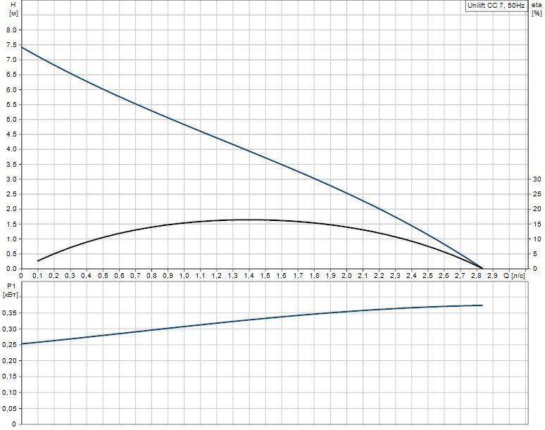 Одноступенчатый погружной дренажный насос Grundfos UNILIFT CC 7 A1 с вертикальным напорным патрубком. Служит для перекачивания чистой и загрязненной воды без волокнистых включений с твердыми частицами до 10 мм, отведения воды из затапливаемых помещений, стиральных машин, моечных агрегатов и душа. А так же откачивания воды из рек, прудов и различных емкостей.