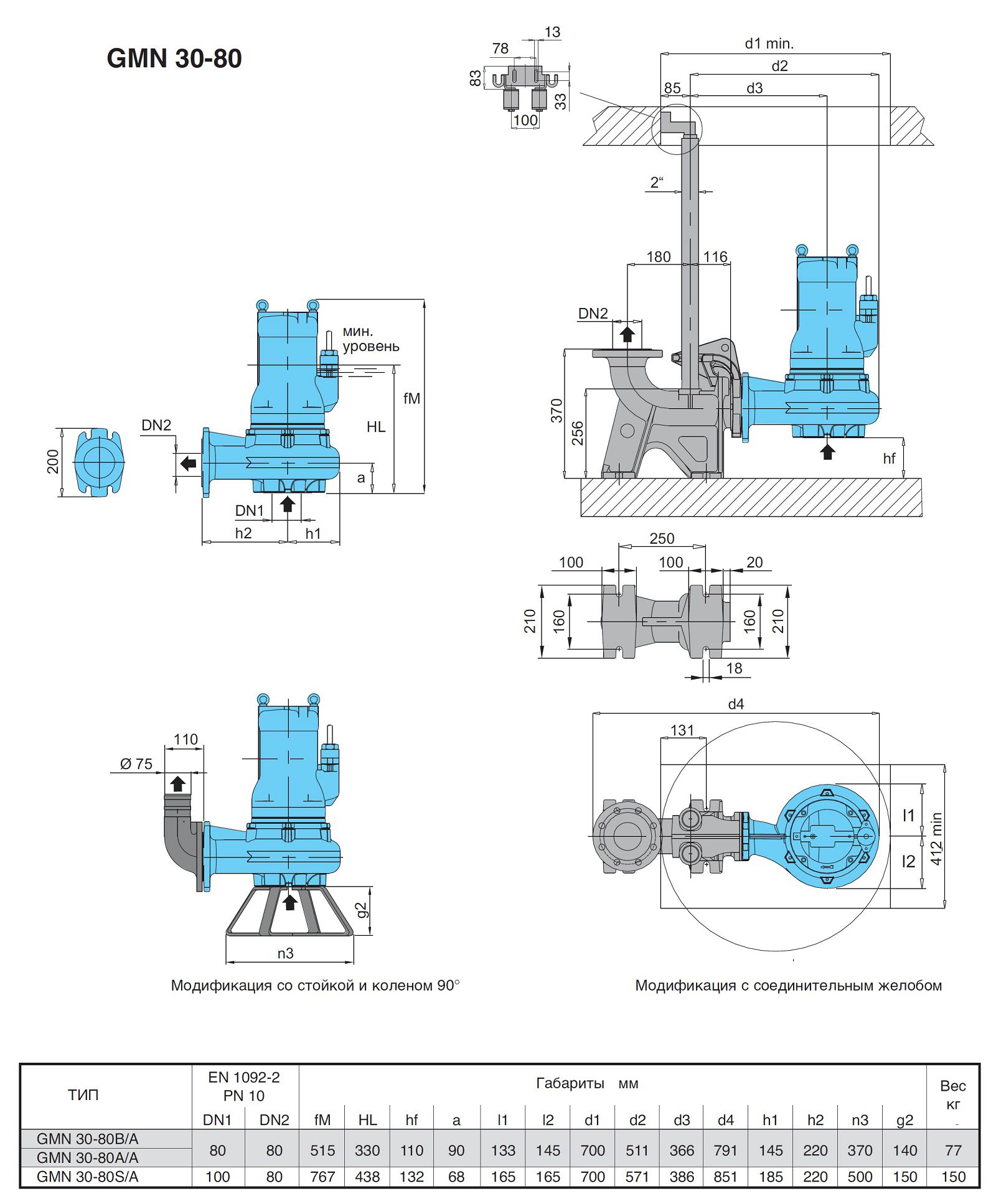 Насосы данной серии применяются для перекачивания сточных вод с температурой до 40С и частицами диаметром от 30 до 40мм