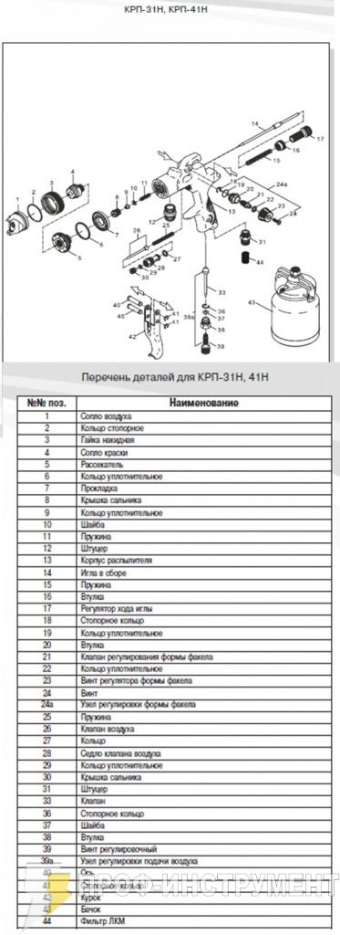 | 2 | поз. 4; КРП- 41В,41Н, сопло краски Ф 1,3мм | 1 |