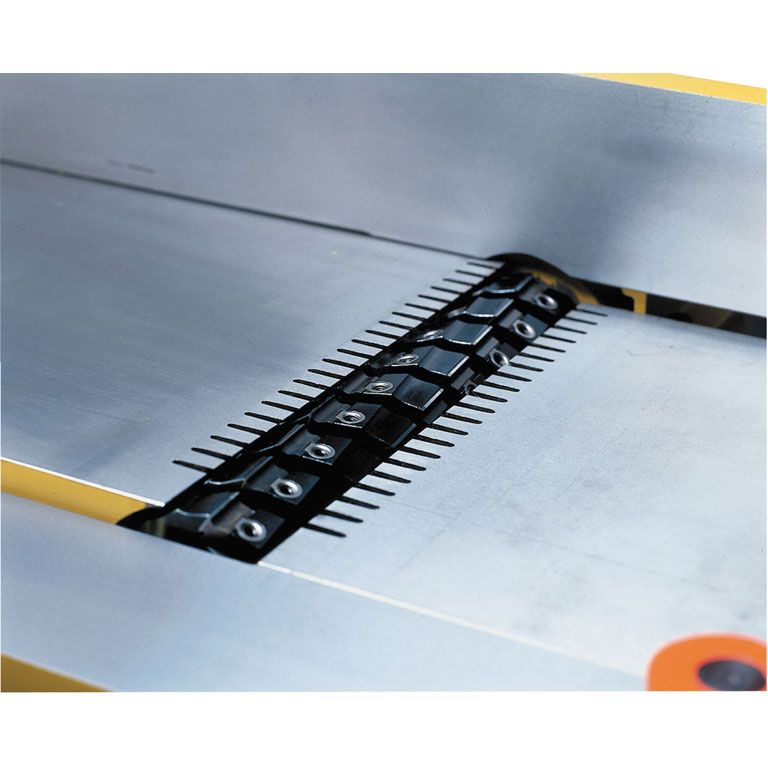 Станок поставляется со стандартным трёхножевым валом, helical является опцией и поставляется за дополнительную плату. При переходе с одного вала на другой, при замене ножей и в других случаях может потребоваться корректировка положения принимающего стола, такая возможность предусмотрена конструкцией и производится простыми настройками без использования инструментов.