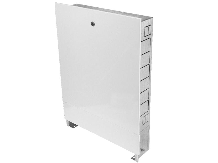 В боковых стенках корпуса шкафа выполнена перфорация, сегменты которой удаляются в любом удобном месте для подсоединения трубопроводов