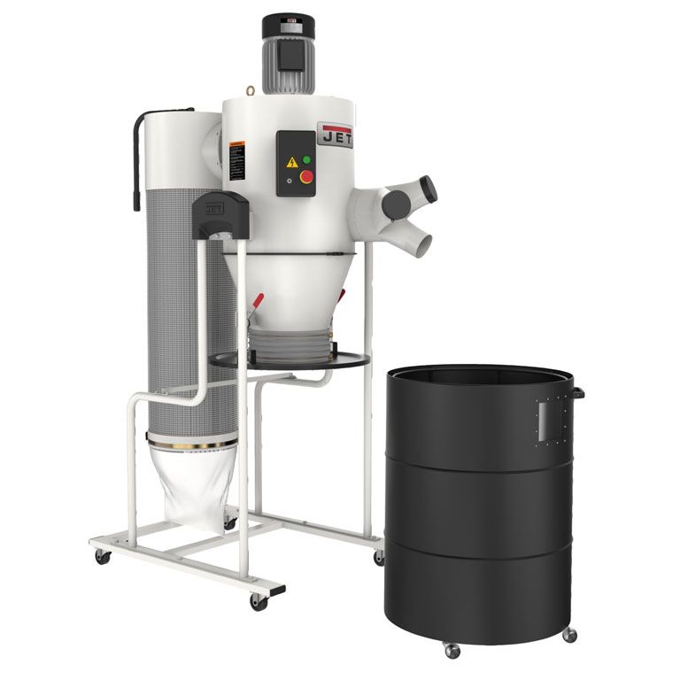 Jet JCDC-3 — вытяжная установка циклонного типа с высокой (2 мкм) степенью фильтрации и улучшенными эксплуатационными характеристиками. Модель оборудована трехфазным двигателем увеличенной мощности. Конструкция с раздельным (пыль/стружка) сбором отходов обладает универсальностью по отношению к типу подключаемого оборудования, отличается простотой и удобством обслуживания. Жесткий корпус с хорошими шумоизолирующими свойствами обеспечивает комфортную работу в помещении. При этом управлять работой установки можно дистанционно при помощи пульта.