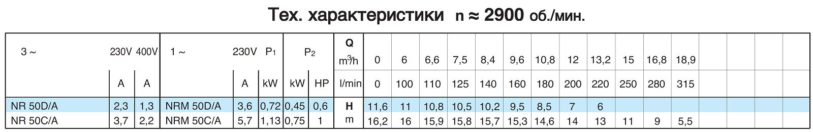 Насосные агрегаты NR4 - центробежные с одним рабочим колесом типа "IN - LINE" с четырехполюсным электродвигателем (n = 1450 об./мин.). Проточная часть насоса и присоединительные фланцы выполнены из чугуна; рабочее колесо - из латуни.